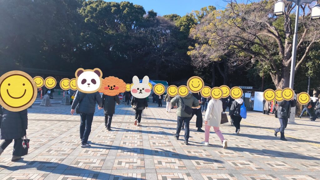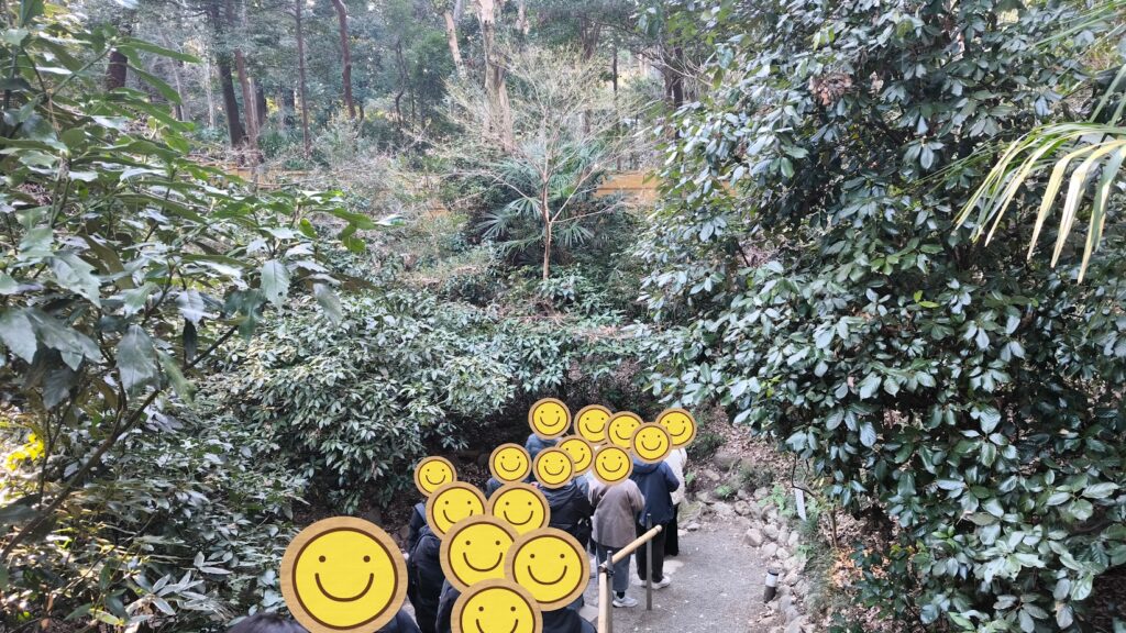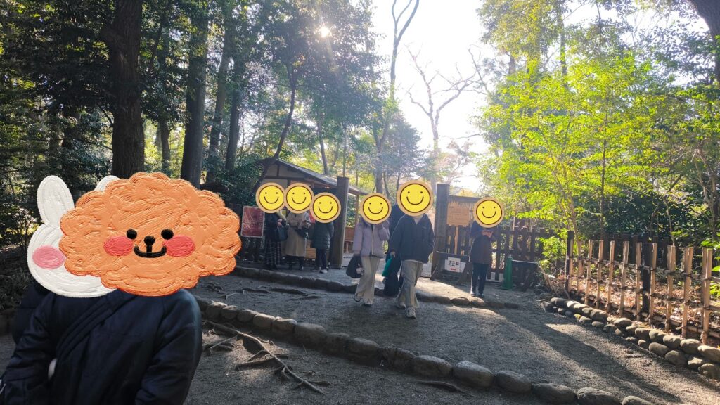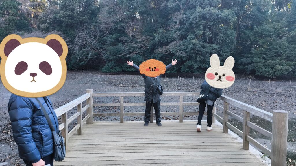 今回は「初詣」+「御苑を散歩」「フォレストテラスで休憩」もして、ゆっくり1時間45分過ごしました。