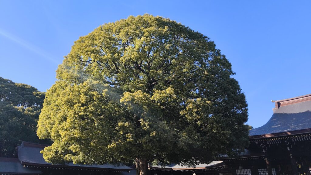 明治神宮の特徴は約70万平方メートルの人工林に囲まれていて、都会の中で自然を感じられること。