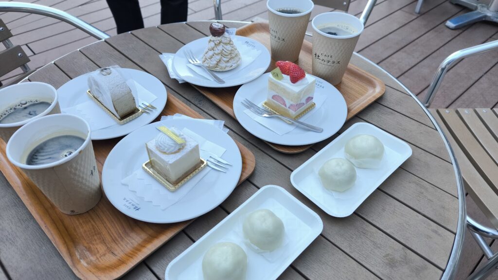 中で今回のマタタビ(スイーツ)を調達してから、テラスに向かいます♪